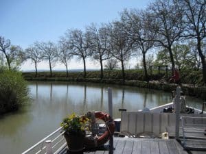 You may know that life in the Languedoc very much follows the seasons. As April sunshine warms the vines and new green buds appear, the barge boats that have been dry-docked since the fall begin preparing for the summer season. All the woodwork is sanded and varnished, the interiors freshly painted, and the hull gets cleaned, sorted, and readied for the barging season.
