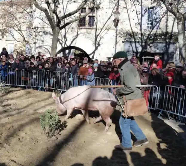 Experience the magic of truffle hunting in Uzes. Meet “Madame Cochran”: A show-stopping truffle hunting pig at the Uzes Black Truffle Festival.