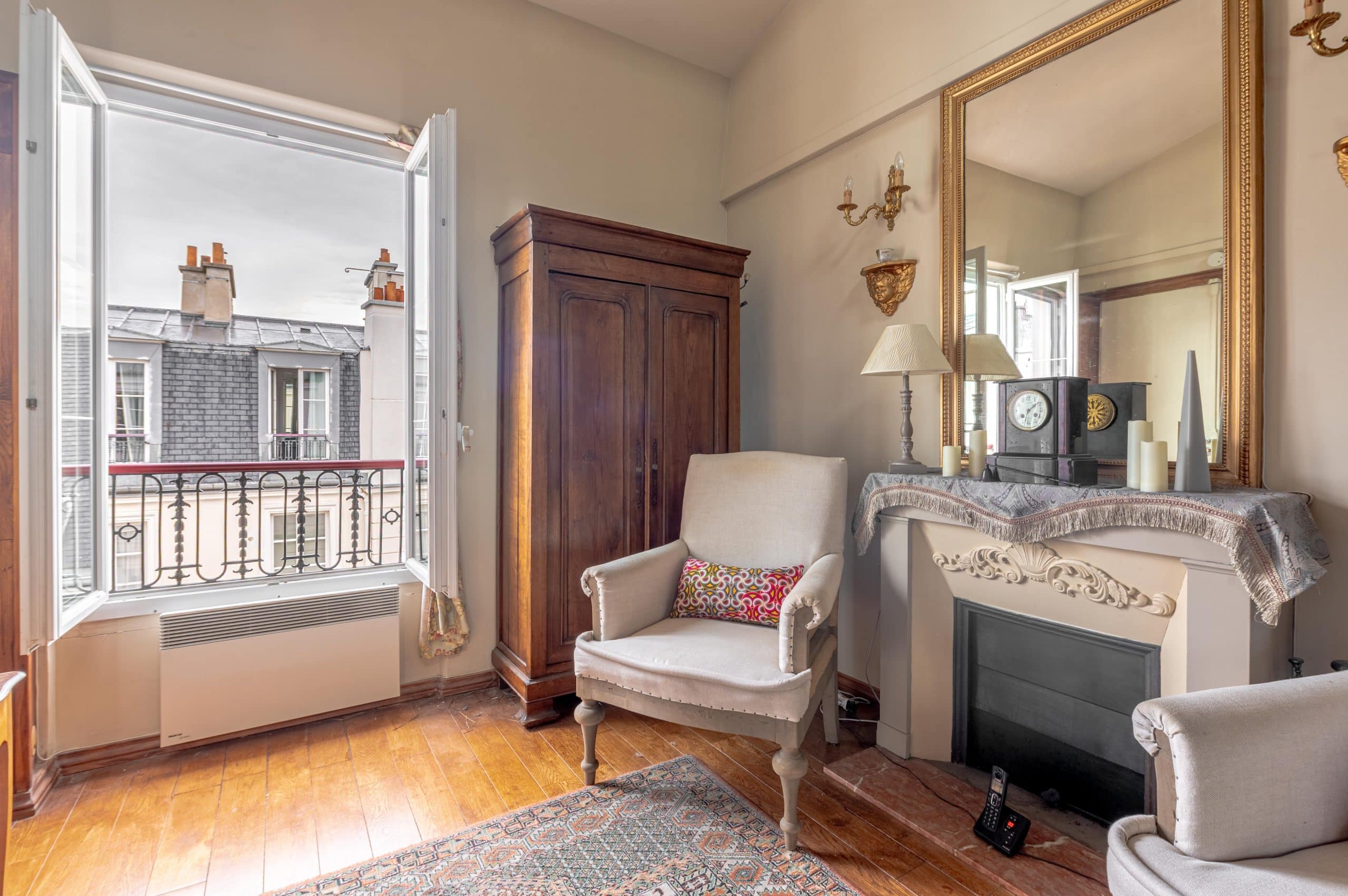 Affectionately known by its co-owners as Le Nid Parisien (“The Parisian Nest”), this sun-drenched apartment blends classic French charm with the best of city living. Imagine waking up to the sounds of church bells echoing across the island, and watching the sunset reflect off the Seine with the distant silhouette of the Panthéon glowing on the Left Bank.